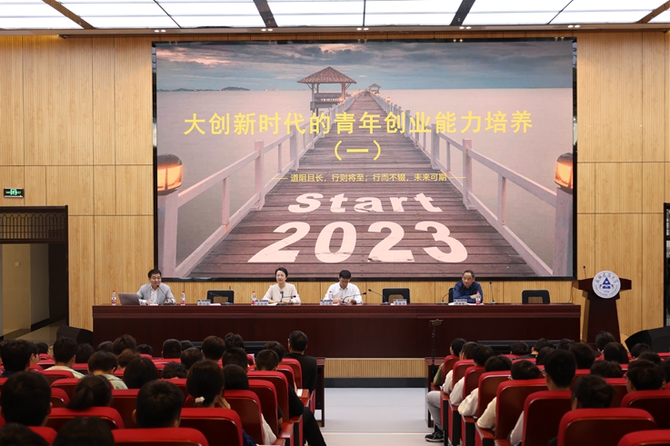 本网讯 10月18日下午,学校在实训综合楼2楼报告厅举办创新创业教育新学期开学第一课活动,此次活动由教务处(招生办、创新创业学院)主办,材料与化学工程学院、数理学院和外国语学院共同承办。出席本次活动的有安徽英迪思股权投资有限公司董事长夏振华、教务处(招生办、创新创业学院)副处长葛立新、材料与化学工程学院党委副书记何世明、数理学院副院长余江应和各学院2023级的新生,本次活动由外国语学院党总支副书记汪令宇主持。