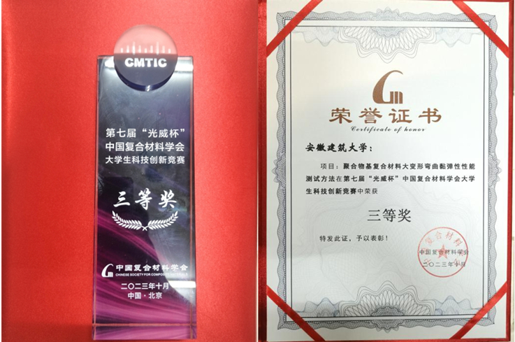 土木学院组建“小海队”参加此次赛事,提交的竞赛作品《聚合物基复合材料大变形弯曲黏弹性性能测试方法》主要研究织物增强树脂基复合材料在等曲率和定曲率变形条件下,大变形弯曲粘弹性性能的测试表征问题,获得赛会评审专家肯定,充分展现了安建大学子勇于创新、敢为人先、奋发向上的精神。