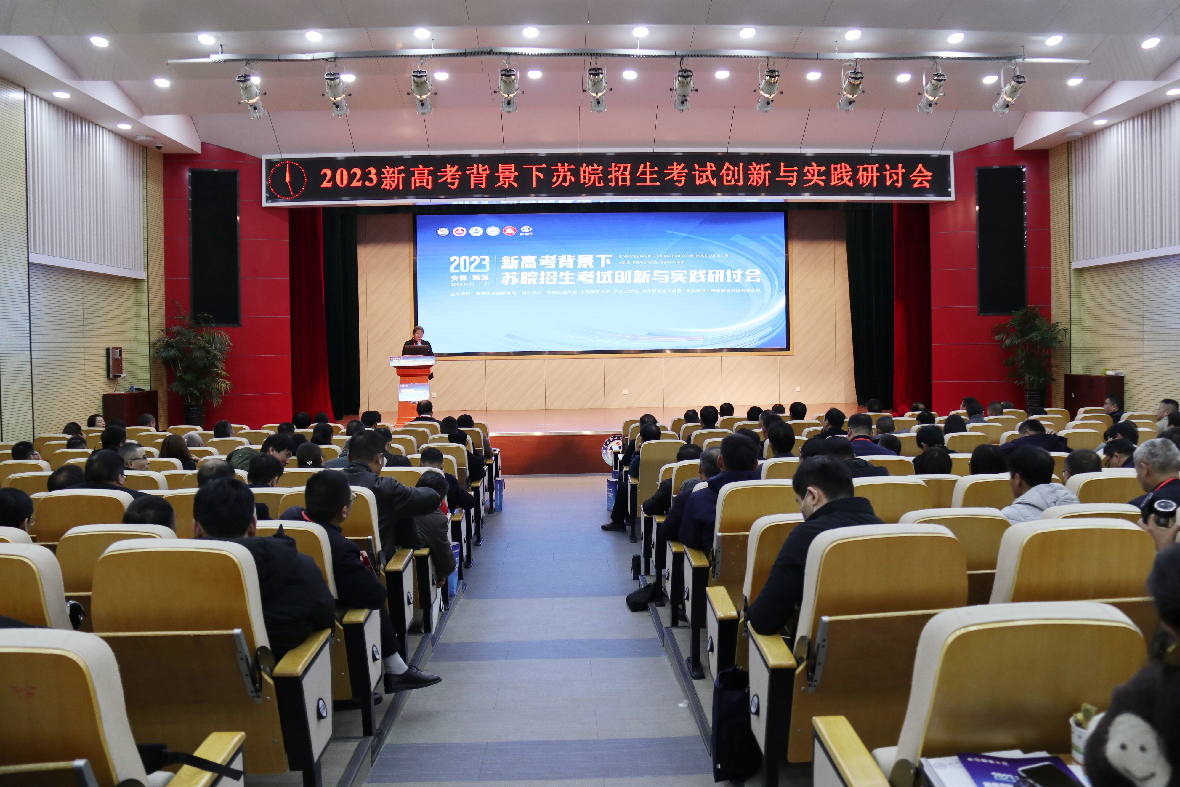 本网讯 为全面落实《国务院关于深化考试招生制度改革的实施意见》文件精神,充分应对2024年新高考在我省正式落地,促进学校与省内外招考管理单位、高中深度沟通合作,11月18日-20日,学校与濉溪县考试管理中心、安徽工程大学在淮北市联合举办“新高考背景下苏皖招生考试创新与实践研讨会”。安徽、江苏两省50余市县招办主任、省级示范高中校长和高校负责人共200余人参会。