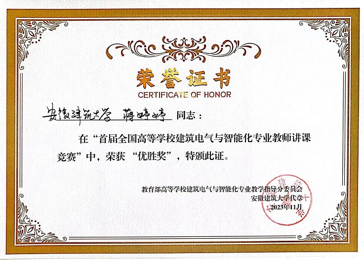 本网讯 近日,首届全国高等学校建筑电气与智能化专业教师讲课竞赛在河南平顶山顺利举行,ku游官方电子与信息工程学院两名教师参加比赛并荣获佳绩,朱徐来老师荣获一等奖,蒋婷婷老师荣获优胜奖。