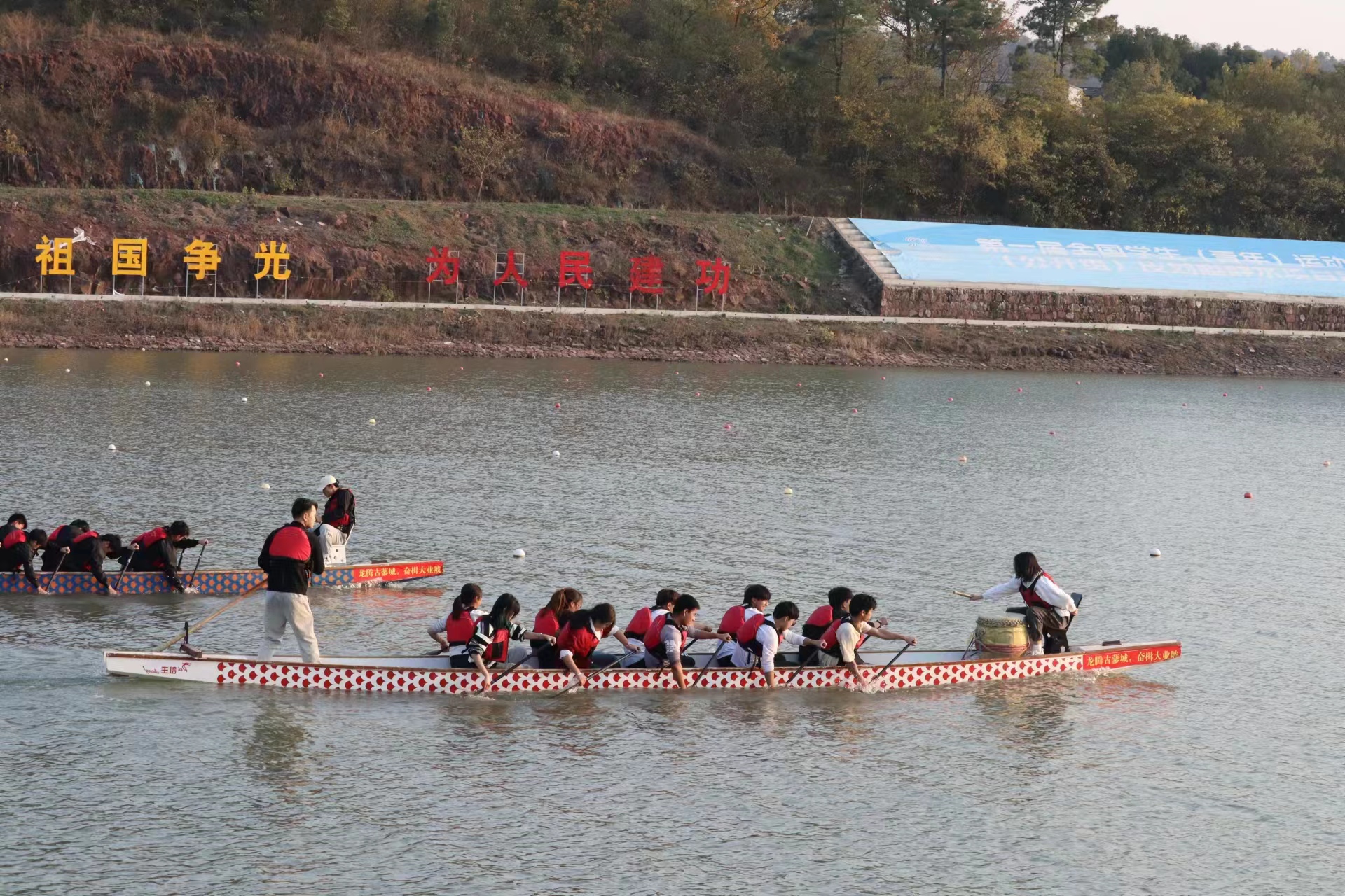 本网讯 11月26日,由安徽省体育局、安徽省教育厅、安徽省体育总会主办,安徽省龙舟运动协会、安徽省水上运动协会承办的2023年安徽省高校龙舟公开赛(合肥站)在紫蓬山大堰湾举行。本次比赛共有中国科学技术大学、安徽师范大学、ku游官方等12所高校22支龙舟代表队348人参赛。