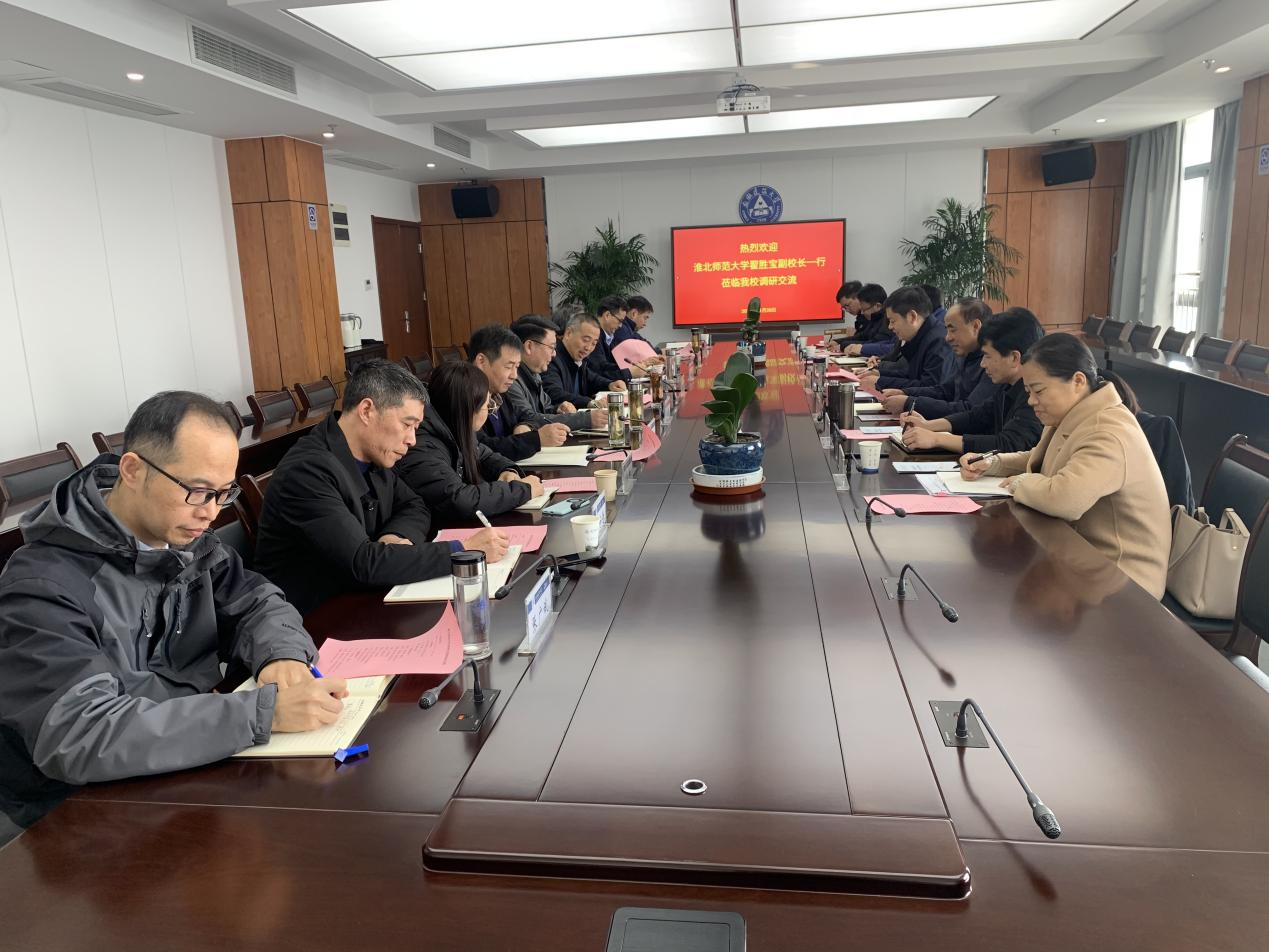 本网讯 近日,淮北师范大学党委常委、副校长翟胜宝一行9人来校调研交流。校党委常委、副校长闵杰,学生部、人事处、教务处、教师发展中心、信网中心、材料与化学工程学院、经济与管理学院等单位负责人参加会议,会议由闵杰主持。