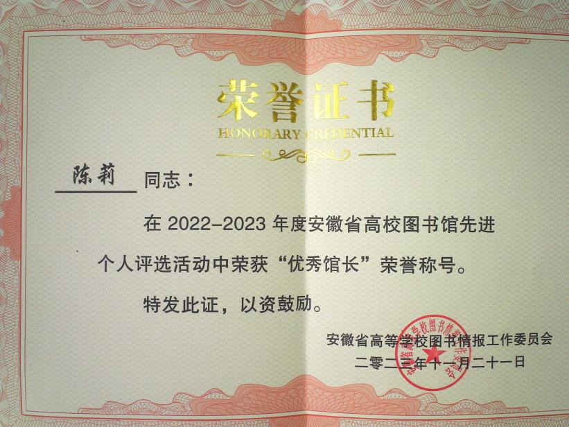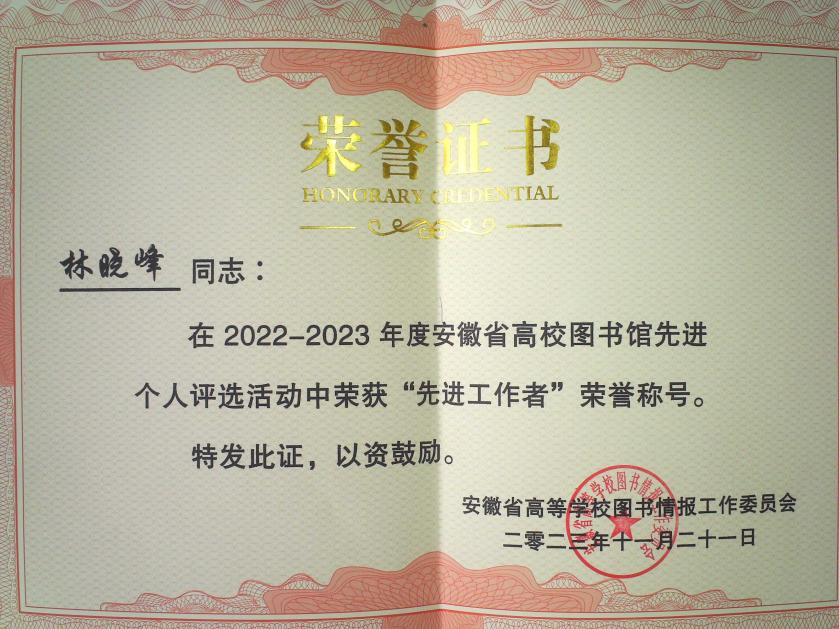 我校图书馆在百余所参评高校图书馆中脱颖而出,取得多项荣誉。图书馆获“2022-2023年度先进集体”,馆长陈莉获“2022-2023年度优秀馆长”,林晓峰老师获“2022-2023年度先进工作者”,体现了省高校图工委对我校图书馆在自身建设及高校图书馆事业发展中所取得成绩的认可和肯定。