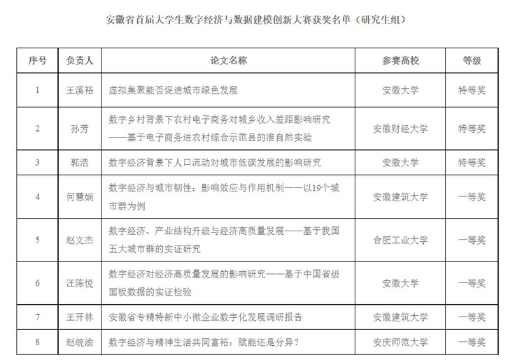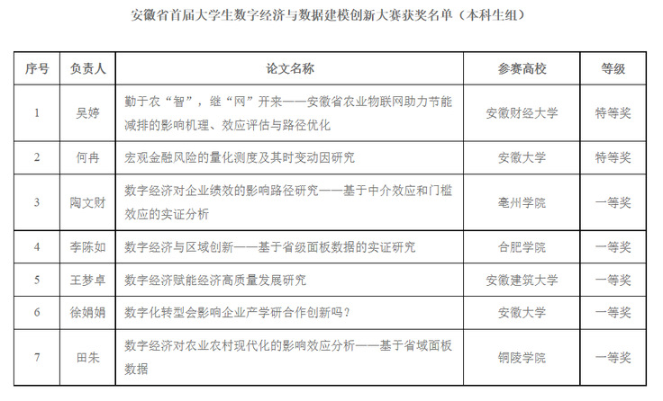 安徽省大学生数字经济与数据建模创新大赛由安徽大学经济学院、合肥工业大学经济学院、安徽财经大学经济学院、ku游官方经济与管理学院、合肥学院经济与管理学院、亳州学院经济与管理学院等单位联合发起,围绕国家以及安徽省数字经济建设中存在的关键问题和未来数字经济需要,旨在培养大学生数字经济思维、数字技能、数字化业务能力,同时为“挑战杯”“互联网+”等重要赛事选拔人才,夯实我省数字经济发展的专业人才基础。