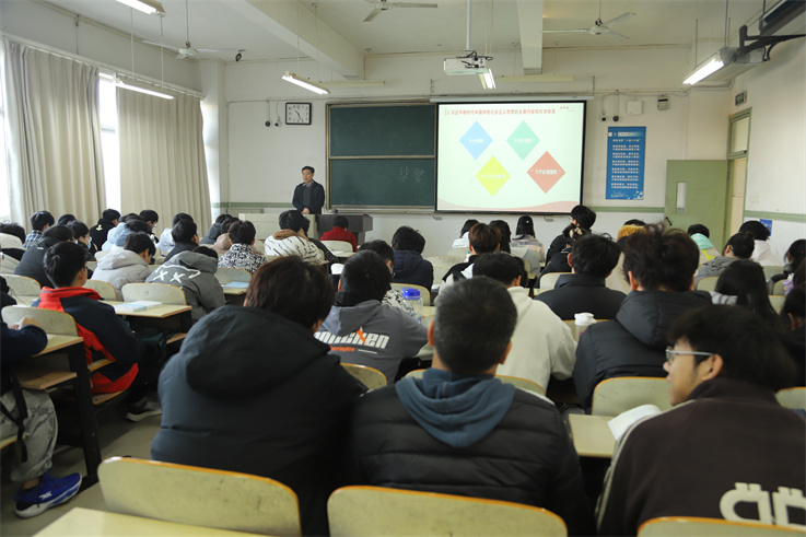 黄显怀为23级无机非专业的同学们讲授了《开辟马克思主义中国化时代化新境界》,他从习近平总书记的学习、成长经历着手,介绍习近平新时代中国特色社会主义思想创立和发展的时代背景,从“内涵博大精深”“彰显实践伟力”“绽放真理光芒”三个方面阐明了习近平新时代中国特色社会主义思想的理论与实践。课堂上,黄显怀结合学校的发展,谆谆教导同学们要学会用习近平新时代中国特色社会主义思想武装头脑,坚定理想信念,锤炼高尚品格,练就过硬本领,为实现中华民族伟大复兴的中国梦书写壮丽篇章。