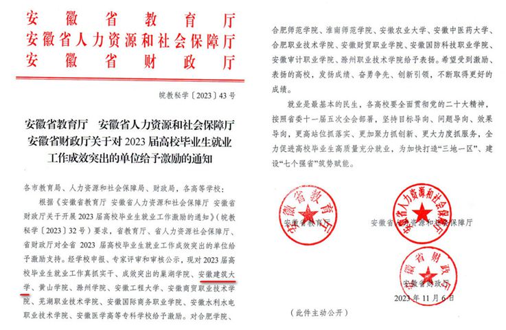 “就业是最基本的民生”,高校毕业生是党和国家的宝贵人才资源。学校始终将毕业生就业工作摆在突出位置,认真执行党和国家有关毕业生就业创业工作的各项政策,坚持立德树人和以生为本的工作理念,有效确保毕业生就业局势的总体稳定,升学率、留皖率稳步提升。