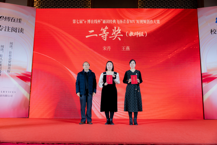 决赛现场,王燕老师以歌唱的方式重新演绎了《桃花源记》,通过婉转悠扬的歌声带现场观众领略了陶渊明笔下的世外桃源,赢得了大家热烈的掌声。表演结束后,经专业评审打分,王燕老师最终荣获教师组二等奖,林晓峰老师获优秀作品指导老师奖。