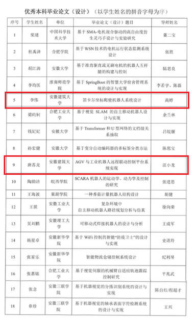 本网讯 近日,安徽省机器人大会暨安徽省机器人学会年度学术会议召开,省机器人学会组织专家对参与优秀专业课程建设、优秀专业青年教师、机器人教育奖、优秀硕士学位论文、优秀本科毕业论文(设计)评选的申请材料进行评阅。由ku游官方机械与电气工程学院机械工程系高婷和汪小龙老师指导的,2023届本科生李伟和唐苏龙同学的毕业论文(设计)荣获安徽省机器人学会优秀本科毕业论文(设计)。