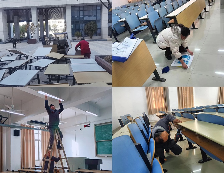 根据学校对考试工作的安排与要求,学校后勤管理处召开专项会议,提前部署,针对考场布置、卫生保洁、电力供应、设施检修、餐饮供应等环节进一步明确工作要求,确保考试期间后勤服务保障到位。