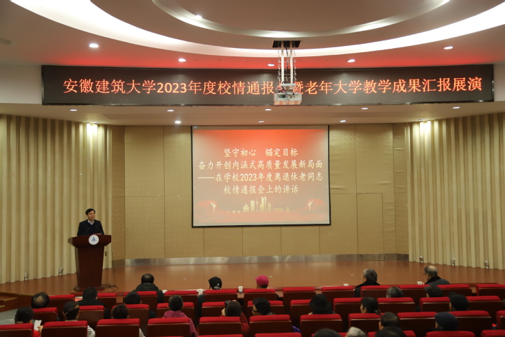 本网讯 新年伊始,学校2023年度离退休教职工校情通报会在北区图书馆报告厅举行。校党委副书记、校长黄显怀出席会议。退休老领导胡昭林、刘贤海、胡传健、宋箭、王志建,相关职能部门领导,离退休工作处全体人员参加会议。近100位离退休老同志欢聚一堂,共谋发展大计,展望美好未来。