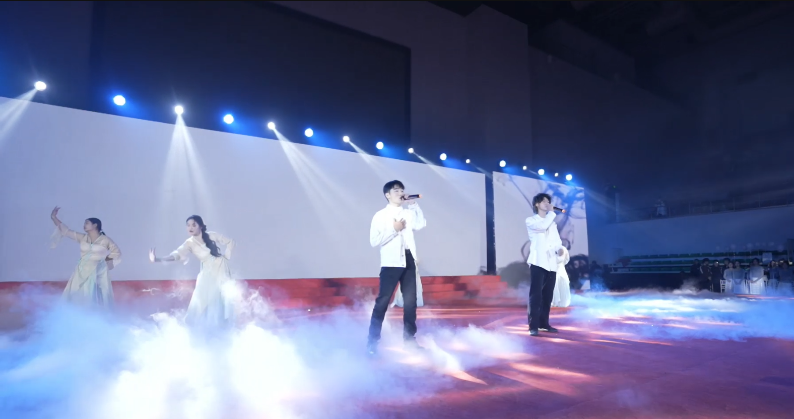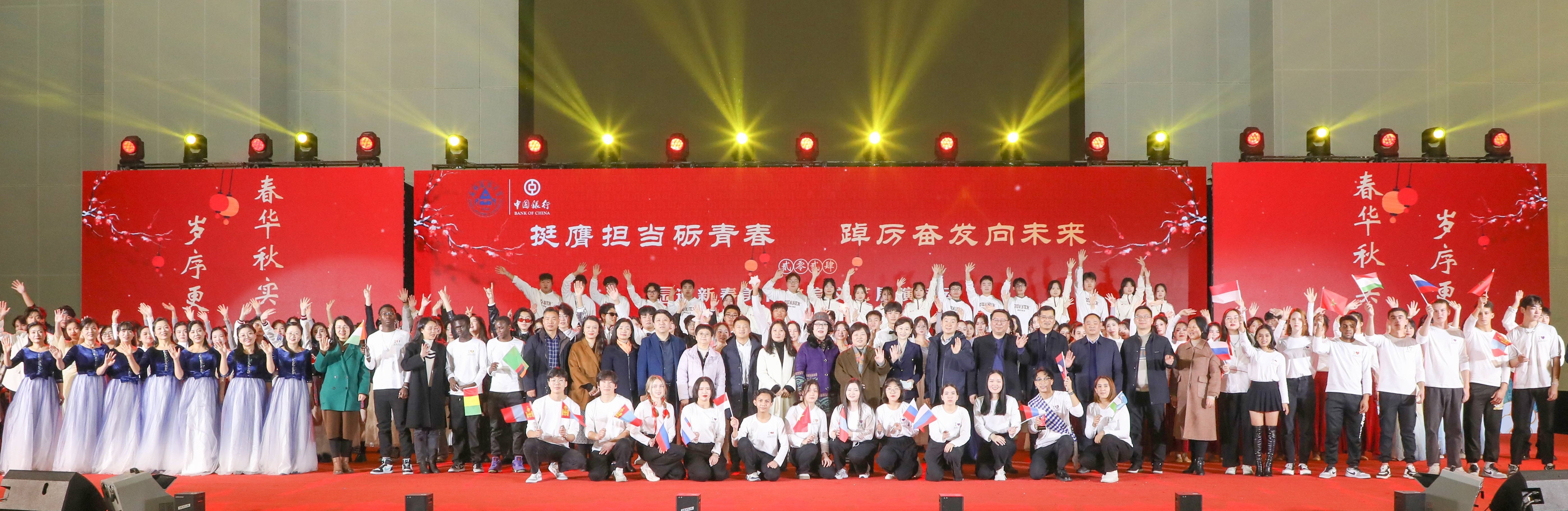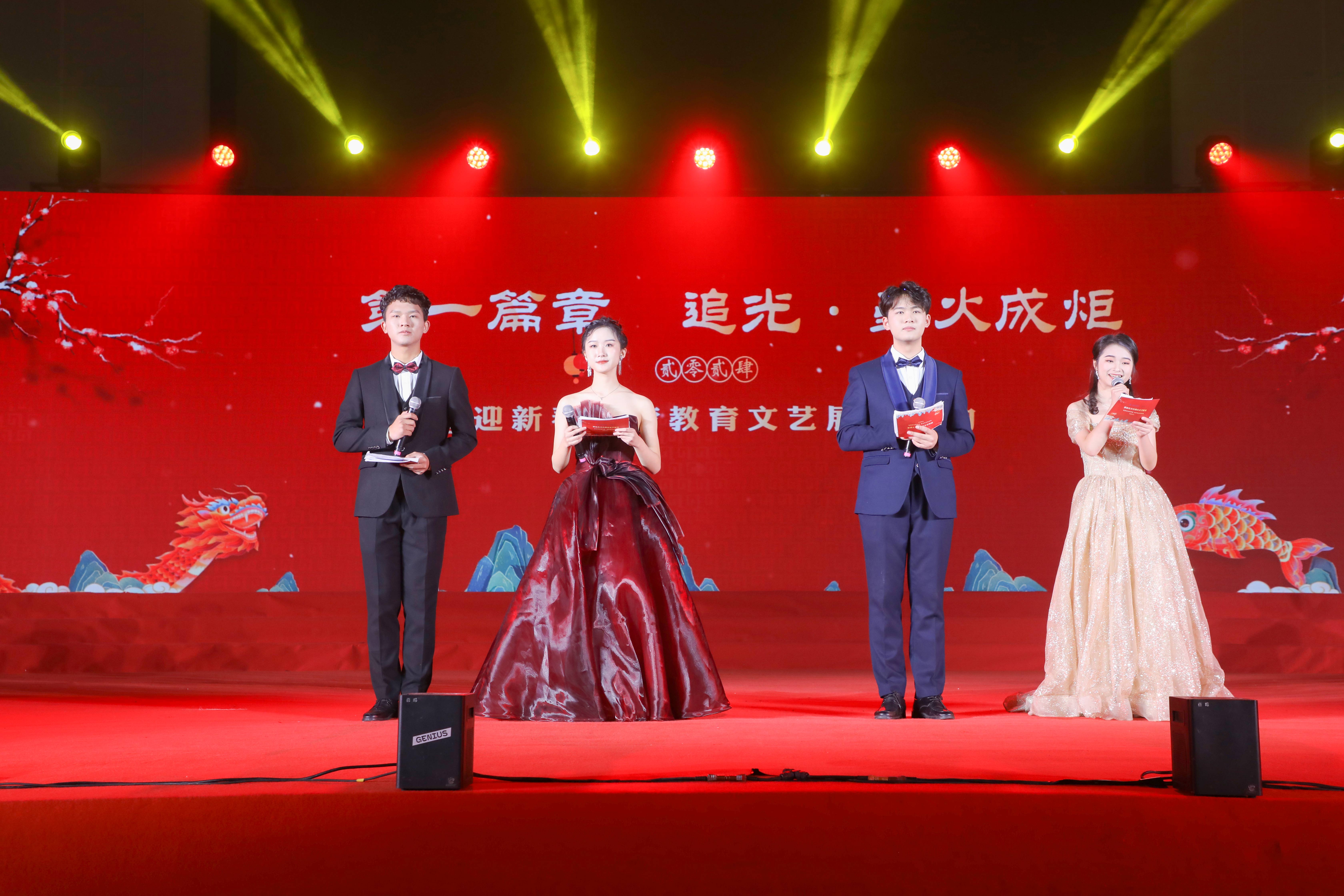 本网讯 流光溢彩,鼓乐共鸣。1月6日,ku游官方迎新春美育教育文艺展演活动在体育馆举行,校党委副书记、校长黄显怀出席并作新春致辞,校党委常委、副校长闵杰,校党委常委、副校长李早;独家赞助单位代表中国银行安徽省分行副行长颜怡、中行合肥分行副行长许正兆、中行蜀山支行行长张媛、副行长万寿华;统战部、学工部、研工部、财务处、教务处、国际交流合作处、团委等相关单位负责人及各学院分管学生工作党委副书记、团委书记与3000余名建大学子、校友共同观看演出。