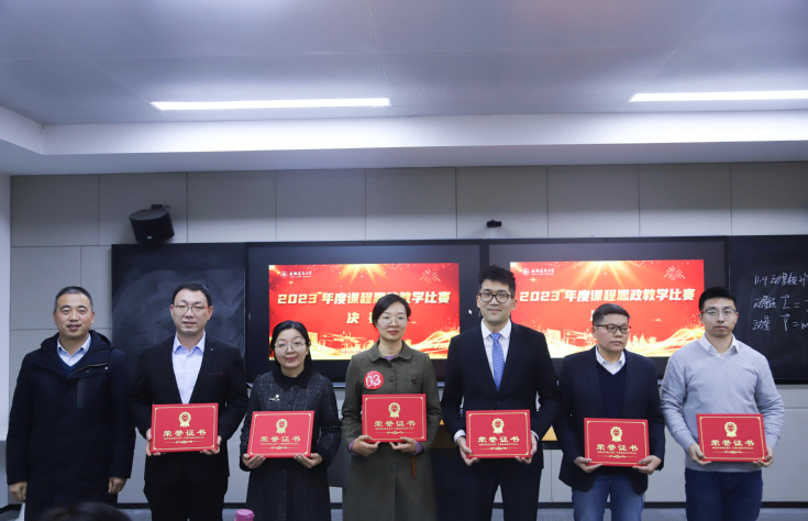 思政课比赛与学校党委理论学习中心组学习相结合,体现了学校党委对课程思政建设的高度重视,为我校青年教师加强师德师风建设、锤炼教学基本功搭建了高水准的授课竞技平台,是落实落细课程思政实施方案的具体举措,以赛促教、以赛促学、以赛促建,真正做到“为党育人、为国育才”。(文/图:吴裕民 许丹丹 蒋芮;审核:葛建化 段宗志)