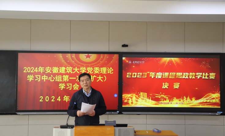 本网讯 为落实立德树人根本任务,大力弘扬教育家精神,全面推进学校课程思政建设,提高人才培养质量,充分发挥课堂教学的主渠道作用,把思想政治教育贯穿人才培养全过程,加深教师开展课程思政的认识和能力,1月8日,学校党委理论学习中心组在南校区徽学楼教师教学发展培训中心召开2024年第一次(扩大)学习会议,全程观摩学习2023年度课程思政教学比赛决赛。校党委副书记、校长黄显怀主持会议,校党委委员,各基层党委(党总支)书记,各学院(部)党政主要负责人、分管教学的负责人,机关部门主要负责人和教师代表参加。