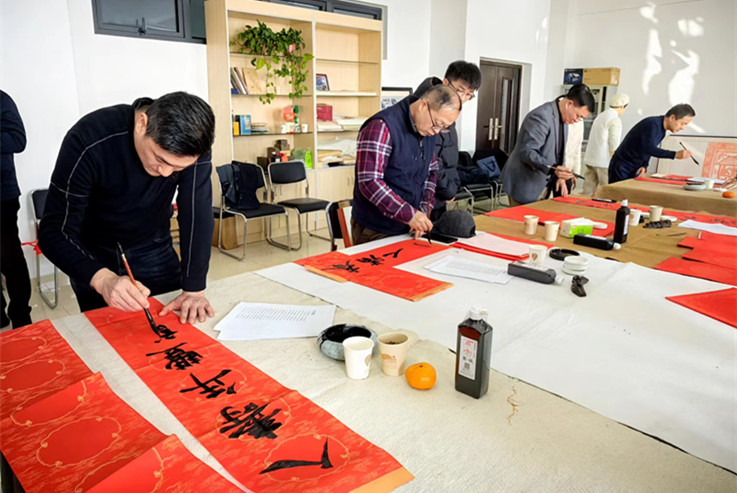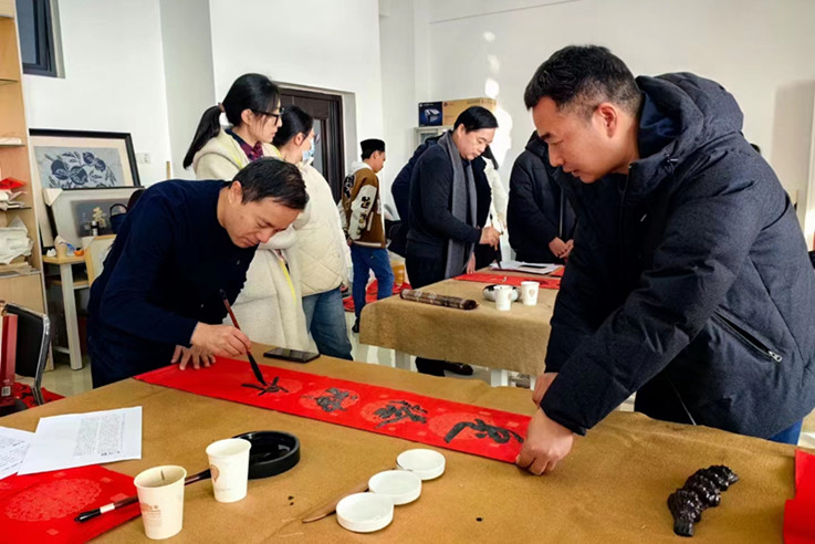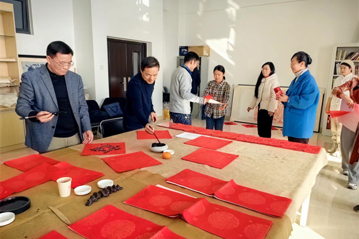 本网讯 喜迎甲辰笔写华章。为营造欢乐祥和的节日氛围,丰富师生的精神文化生活,推动中华优秀传统文化进校园,校工会联合艺术学院、安徽文艺评论创作基地文艺志愿服务点共同举办“安徽书法名家送文化进校园——送春联 ”活动,邀请安徽省书法家协会副主席石海松、陈智,秘书长程多林,中国民协理事、安徽省民间文艺家协会副主席刘晓明、秘书长史培刚,安徽省青年书协副秘书长张勇等艺术名家为师生书写春联,送上新年祝福。