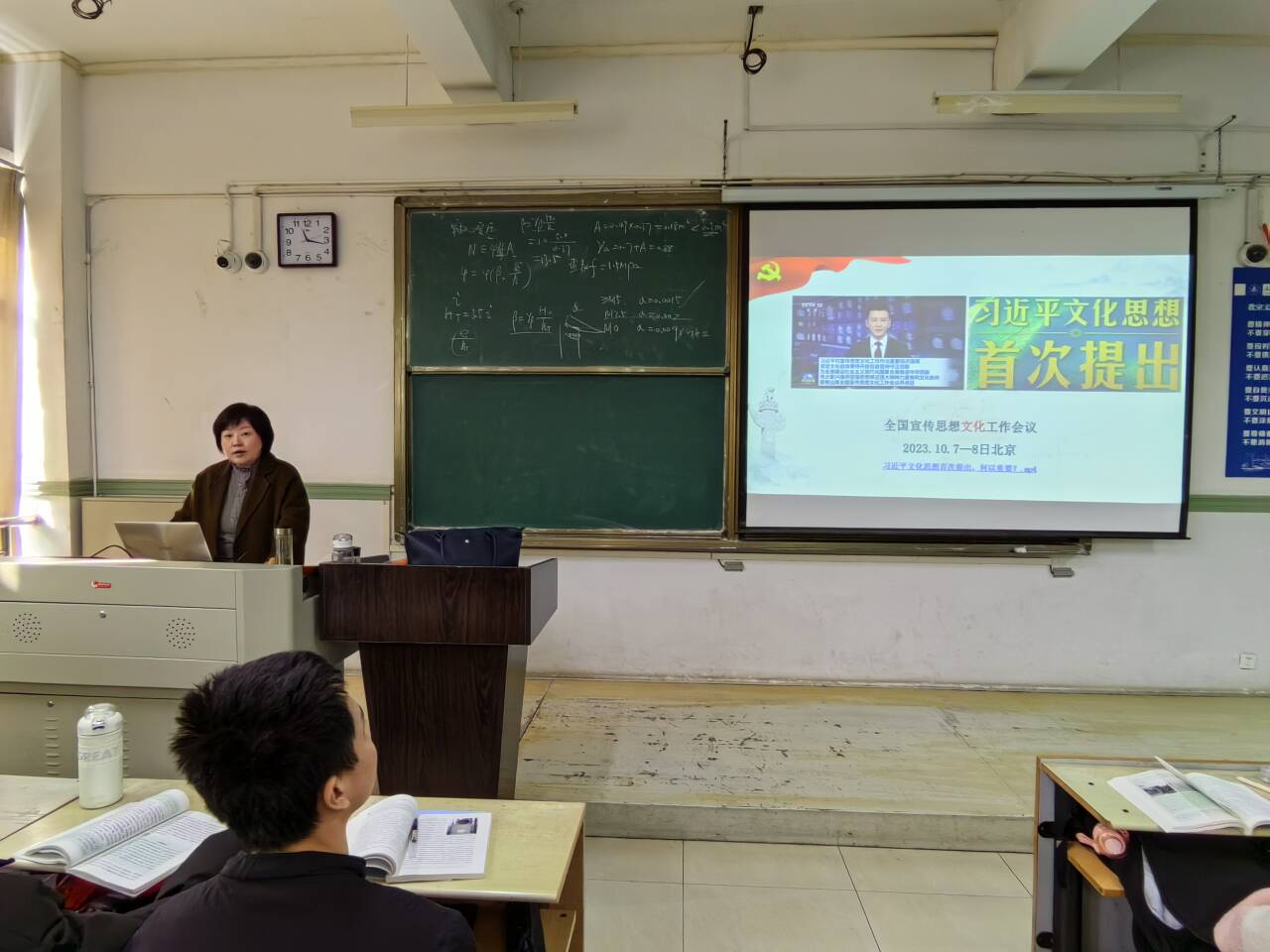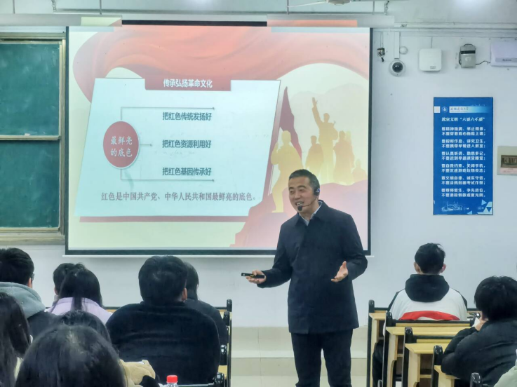 校党委常委、副校长闵杰教授讲授了《思想之光,照亮前行之路——学习习近平文化思想》,闵杰从文化的重要作用谈起,结合接地气的事例,与同学们一起探讨我国文化建设举什么旗、走什么路、坚持什么原则、实现什么目标等根本问题。闵杰重点讲授习近平文化思想是在新时代中国特色社会主义文化建设伟大实践中形成并不断丰富发展的,是新时代党领导文化建设实践经验的理论总结是习近平新时代中国特色社会主义思想的文化篇。闵杰勉励青年学子牢记党的教诲,用好红色资源,讲好红色故事,大力弘扬红色文化,立志民族复兴,在青春的赛道上奋力奔跑,让青春在不懈奋斗中绽放绚丽之花。