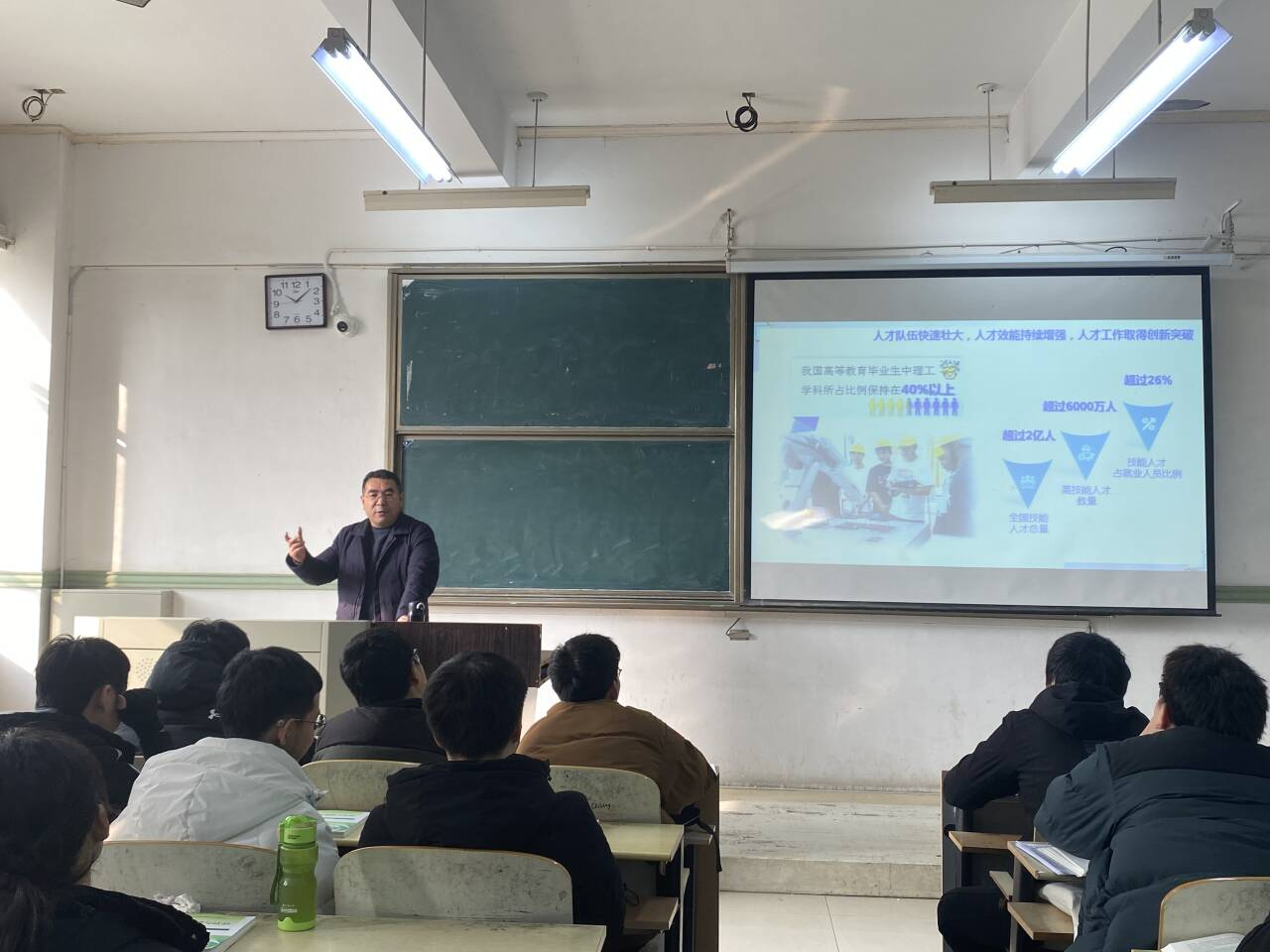 校党委常委、副校长蔡国军教授“加快建设教育强国、科技强国、人才强国,为全面推进中华民族伟大复兴提供有力支撑”为主题,为2023级的学生讲授了一堂生动的思政课。蔡国军结合自身对科技前沿的掌握,给学生们分析了科研领域取得的成就以及存在哪些亟待解决突破的问题,怎样通过加强教育和人才培养来建设科技强国,为同学们系统阐释了教育强国、科技强国、人才强国的时代内涵。蔡国军勉励大学生要始终保持昂扬向上的精神状态,在这个大有可为、必有可为的新时代,练就过硬本领,投身强国伟业。