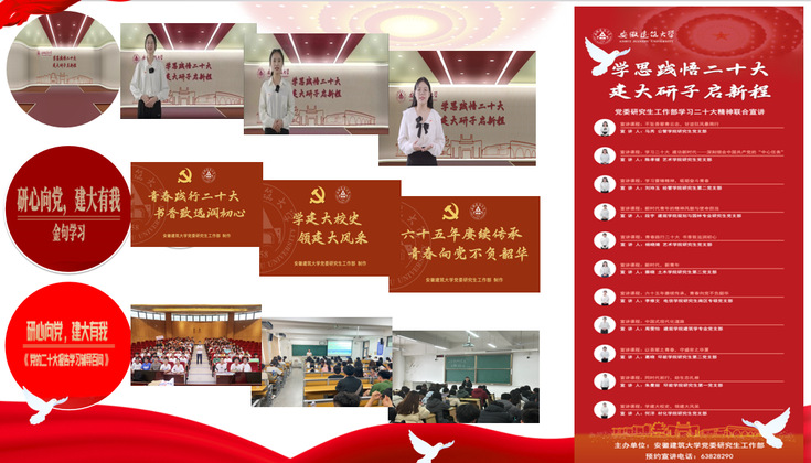 抓好思政教育关键点。把牢育人方向,提升育人实效。以学习贯彻习近平新时代中国特色社会主义思想主题教育为契机,持续推进“研思工作坊”建设,通过推送“党的二十大报告学习辅导百问”“金句学习”“建大红色巴士”等政治理论学习内容,强化研究生思想引领,引导研究生学习党史党情,鼓励将个人理想追求融入党和国家的事业之中。挖掘专业资源,凝练思政精品。依托建筑类高校的专业底蕴,实现专业思政同向同行,结合学校研究生思想政治教育工作实际,开展“学习宣传贯彻党的二十大精神”专题研究生精品思政项目建设工作,共4项课题立项。搭建实践课堂,强化学用结合。率先在新校史馆开展“校史馆里的微党课”,将理论学习和实践体验相结合,在师生互联互动中实现对研究生的思想引领、价值塑造和科学精神培育,通过党课宣讲、表彰先进、感悟交流等环节,将“科学理论”转化为研究生喜闻乐见的“生动故事”,实现读思结合、学用相长、知行合一。