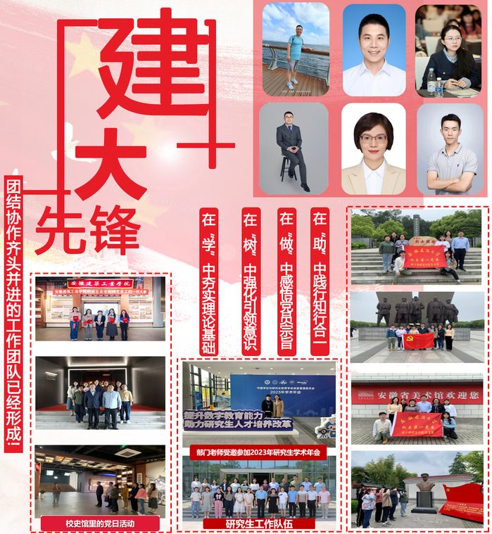 发挥研究生党支部聚合力。突出政治引领,夯实党建基础。推进研究生党支部标准化规范化工作,促进研究生党支部活动创新及活力提升,围绕“研心向党,建大有我”的品牌导向,推出“我们的研究生党支部风采”专题10期,努力打造使命型党组织。推进研究生党组织建设系列创新工程,培养、教育、选树先进研究生党组织,培育推荐环能学院研究生专硕党支部申报创建安徽省第二批“研究生样板党支部”。强化思想引航,深化理论武装。紧密结合学校学习贯彻习近平新时代中国特色社会主义思想主题教育重大部署,构建政治理论学习型校园,部门精心遴选、培育组建“研究生党员宣讲团”,围绕“学思践悟二十大,建大研子启新程”主题,打造精品微党课12期。加强榜样引导,营造争先创优氛围。在新校史馆里开展“研究生党支部微党课比赛表彰大会”,遴选推荐土木工程学院研究生第二党支部副书记杜文正申报第二批全省“研究生党员标兵”,选树优秀研究生党员树立典型,旨在教育引导研究生党员进一步坚定理想信念,涵养家国情怀。