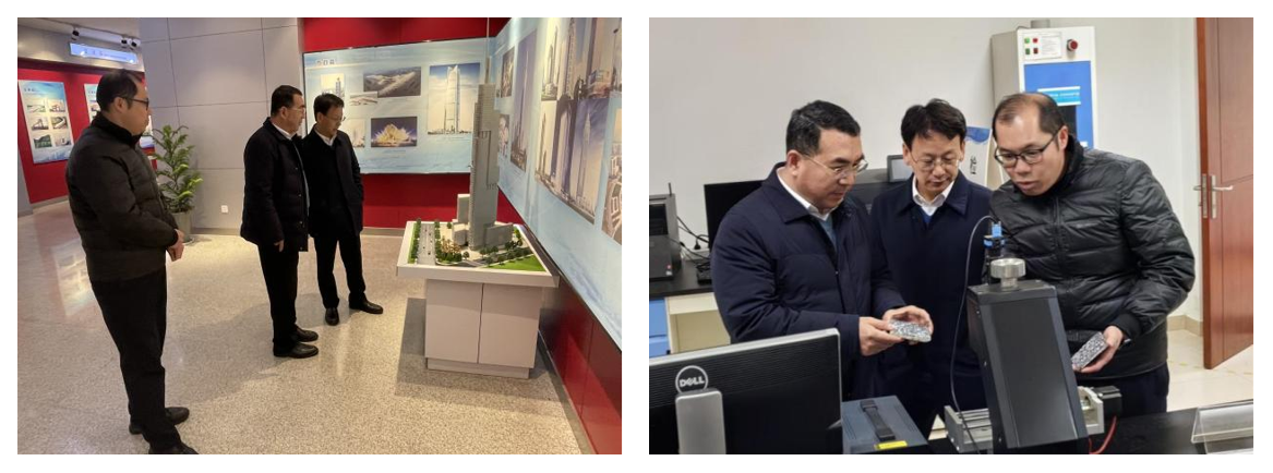 本网讯 近日,校党委常委、副校长蔡国军率队赴高性能土木工程材料国家重点实验室进行专项调研。高性能土木工程材料国家重点实验室副主任、苏博特研究院院长洪锦祥,江苏省苏博特研究院副院长穆松,以及智能地下探测安徽省重点实验室等部门负责人、研究骨干参加调研活动。