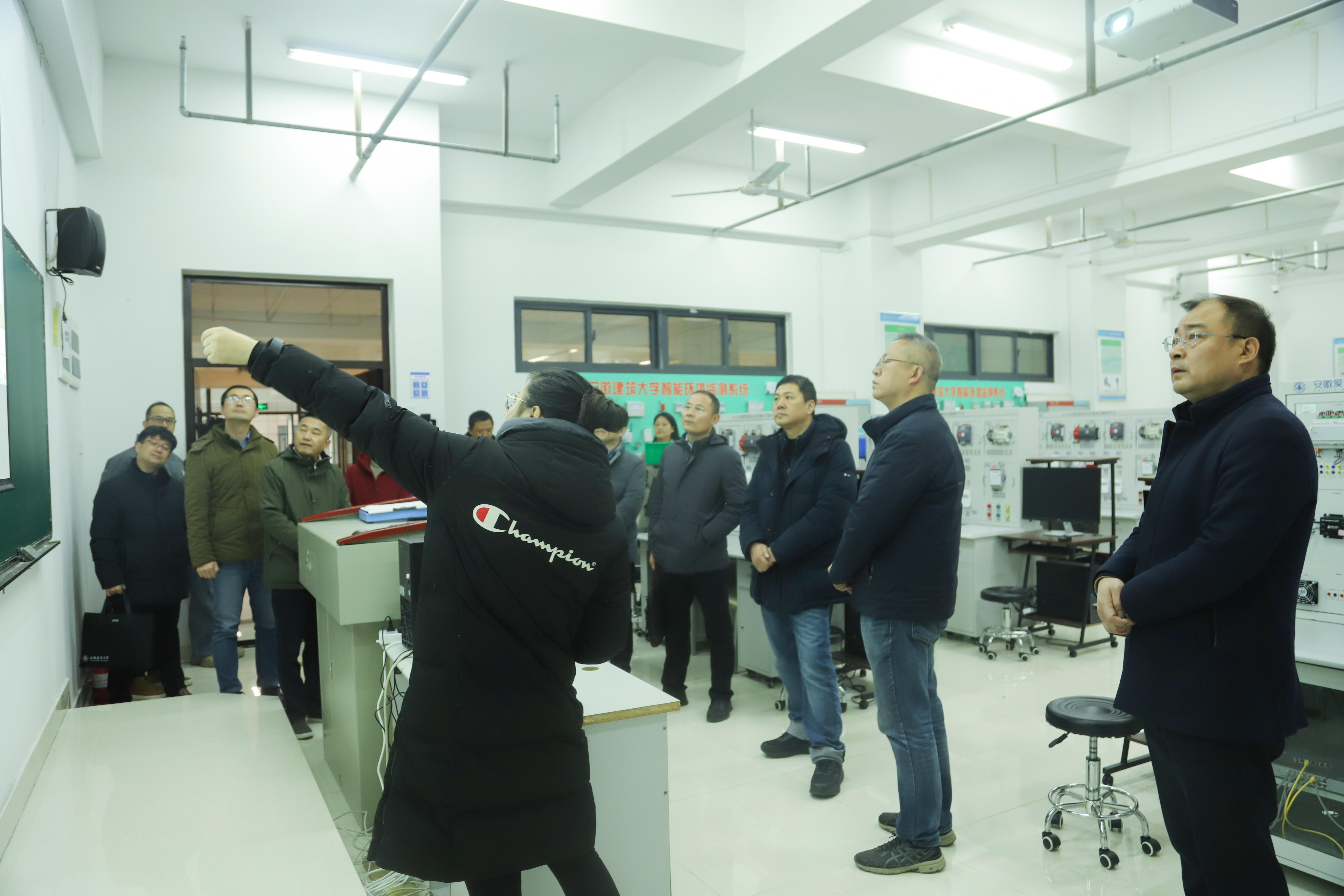 来访人员一行首先实地参观走访了机械与电气工程学院、电子与信息工程学院,听取了相关实验室建设情况讲解。