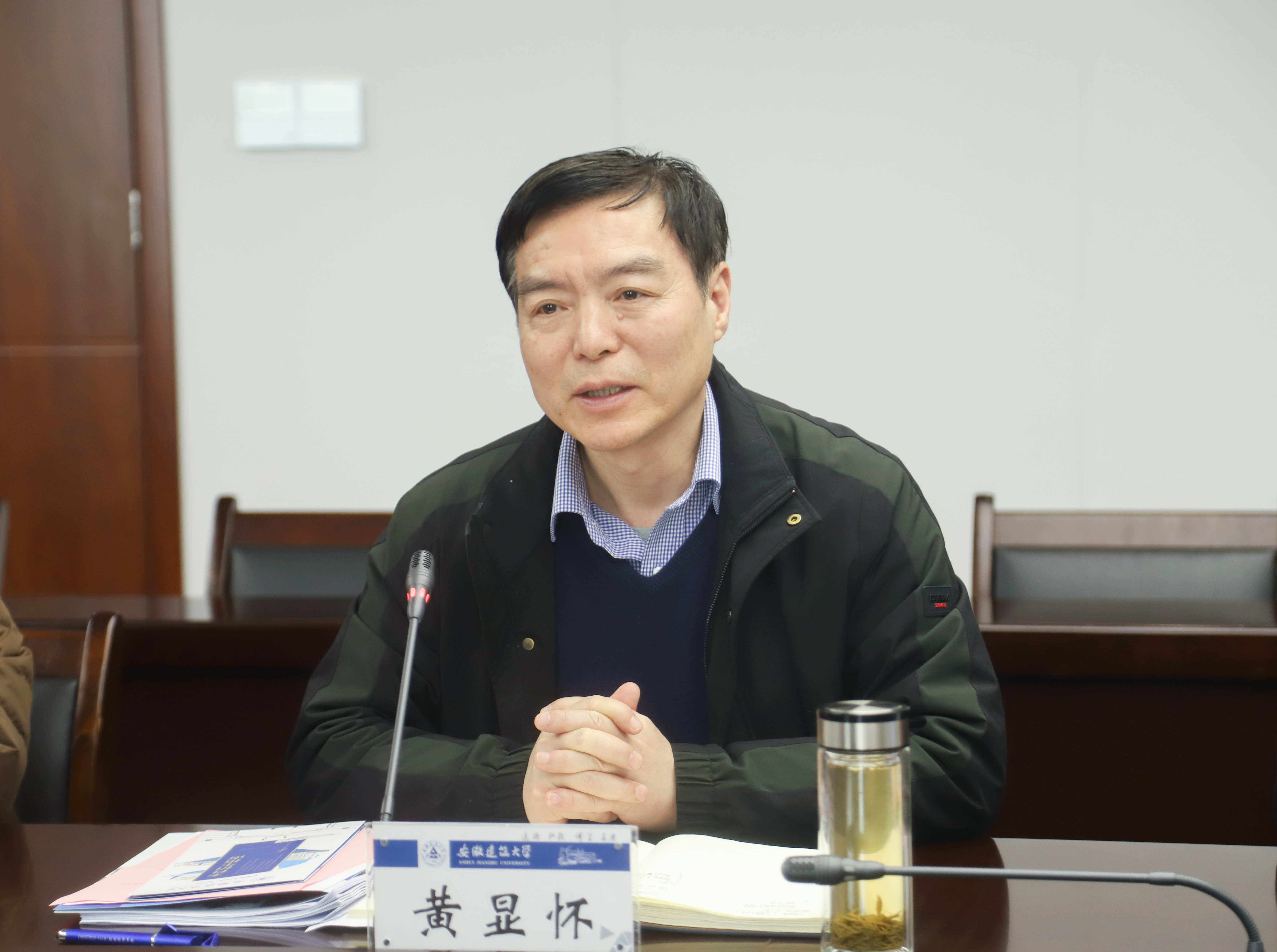 黄显怀代表学校对合肥合锻智能制造股份有限公司、合肥市智能机器人研究院一行的到来表示热烈欢迎,并提出希望能开展深度合作,三方合力,依托我校建筑专业特色,形成良好的运行模式,将人工智能学院建设成一所与企业共享资源、国内有影响力、创新办学模式的新型学院。