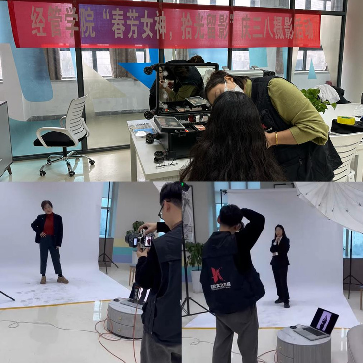 以光影展现师者风范,以镜头定格美好瞬间。3月6日,经管学院邀请专业摄影、化妆师团队,为学院女教工拍摄形象照,打造个人形象,展示教师风采。拍摄现场女教工妆容精致、精神抖擞,造型优美、姿势优雅;活动全程秩序井然,拍摄氛围轻松愉悦,女教工们对照片满意度高。此次形象照拍摄实用美观,满足了教工们参加学术交流、报告会的实际需要,便于教师对外合作交流个人形象的宣传,此次活动既是女教职工展现良好风貌的美好体现,也是在节日来临时收到的温情礼物,提升了女教职工的参与感、幸福感。