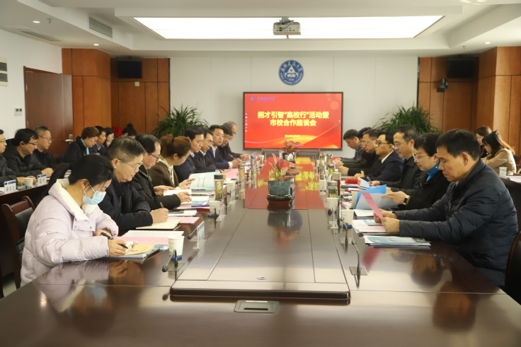 本网讯 3月8日,六安市招才引智“高校行”市校合作座谈会在南校区徽风楼21楼第二会议室举行。校党委副书记、校长黄显怀,六安市委常委、副市长王红出席会议。校党委常委、副校长蔡国军主持会议。