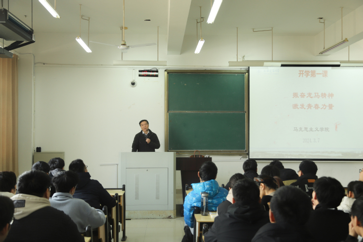 本网讯 3月7日上午,逸夫楼5203教室内座无虚席,掌声不断。校党委副书记、校长黄显怀教授给同学们上了一堂精彩的“开学第一课”。黄显怀以“观大势 谋大局 干大事”为主题,与同学们探讨时代主题和历史使命,对同学们寄予殷切希望。