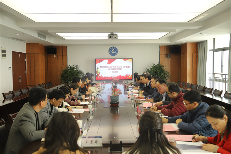 本网讯 3月13日上午,学校在徽风楼召开贯彻落实习近平总书记“3·18”重要讲话精神五周年座谈会,会议由校党委副书记、校长黄显怀主持,校办公室、宣传部、学工部、教师工作部、教务处、教师发展中心等部门负责人,学院副书记及辅导员代表、马克思主义学院教师代表参加。