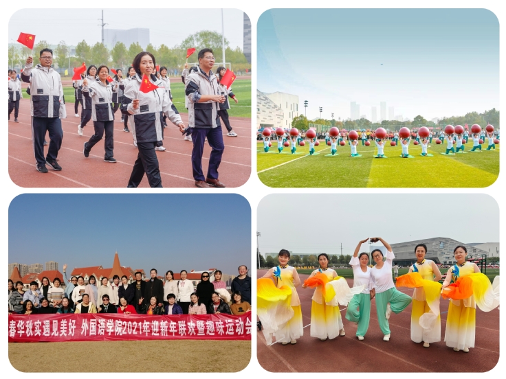 参加文体活动,展示自我独特魅力。依托学校各文体协会平台,学院职工踊跃参加各项活动。参加瑜伽协会、舞蹈协会,校运动会开幕式等;参加唱歌协会,在校庆65周年、年度文艺展演等大型活动中精彩亮相;参加趣味拓展运动会,奋力拼搏的精神让人印象深刻。学院打造的品牌活动“外院好声音”歌手比赛,每年举行,职工们热情不减;征文比赛、诵读比赛,捷报频传;手工制作活动,报名火爆;赏春、踏青、春秋游活动,展现了三尺讲台之外的格局魅力。