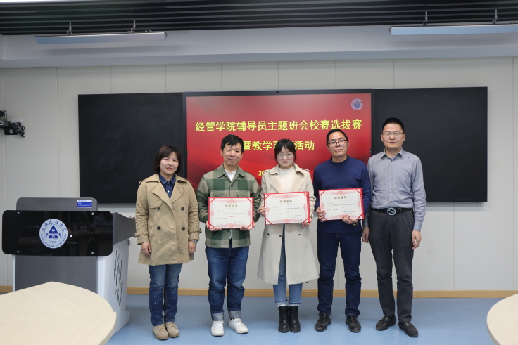 本网讯 为深入学习贯彻习近平新时代中国特色社会主义思想和党的二十大精神,落细落实习近平总书记关于教育的重要论述和指示批示精神,着力打造政治素质过硬、工作作风优良、业务能力精湛、育人水平高超的辅导员队伍,推动“时代新人铸魂工程”落地生根,3月20日,经管学院在建树楼523教室举办辅导员主题班会校赛选拔赛暨教学观摩活动。比赛邀请了宣传部、统战部、学生工作部、国有资产管理处、审计处负责人和两位校友担任评委。学院党政班子、全体辅导员和学生代表参加了现场观摩。