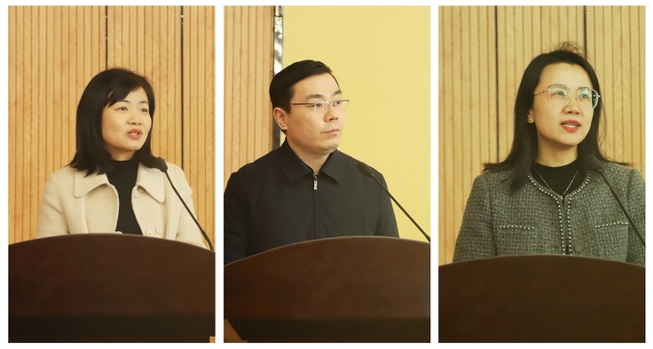 经济与管理学院党委副书记帅英、外国语学院党委副书记汪令宇、教务处陈晋老师分别代表获奖单位和个人在会上作交流发言。