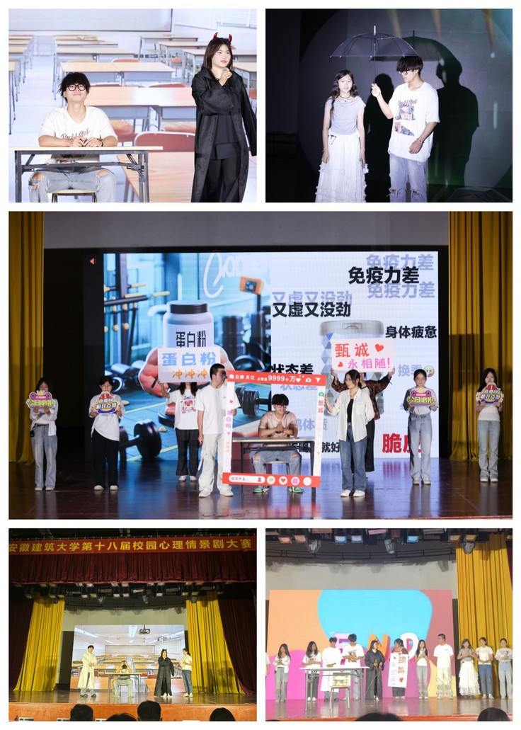 学院学生自编自导的《你不是我的假想敌》心理情景剧,聚焦学业焦虑、人际冲突、人设打造等现实议题,以“沉浸式演出”模式展开。讲述一名外语学生在网络平台上的人设困境与突破,探讨角色心理动机。评委老师点评:“戏剧的‘安全距离’让学生更易投射自身情感,而互动环节则打破了‘旁观者’身份,促成共情与反思。”活动还在班级设置“情绪盲盒”环节,参与者抽取剧中金句卡片,并分享个人相关经历,学生在反馈表中表示通过剧目重新审视了自己的压力源。