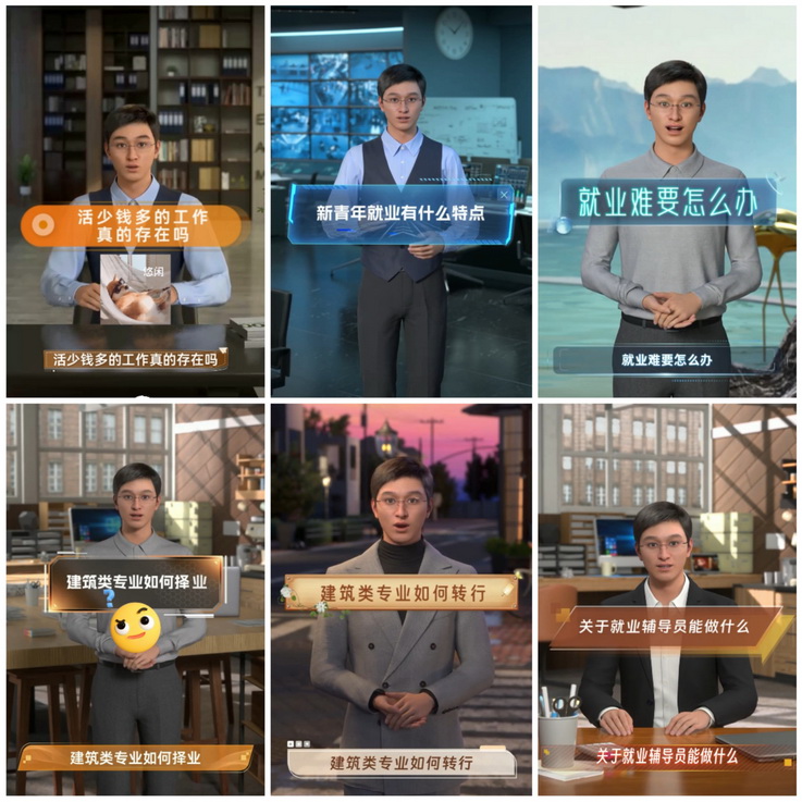 针对传统思政教育“单向输出、反馈滞后”的痛点,学院通过“AI智能体+微信公众号+数字人”三端协同模式,形成从内容生产到效果评估的全链路闭环。在内容创作方面,AI辅导员形象数字人“逗留小小”通过生动的短视频、图文推送等形式,打造“沉浸式”思政内容矩阵。基于AIGC技术自动生成的教育素材,涵盖短视频、推文等多样化内容,团队效率大幅提升,实现思政素材生产的“量质双升”。