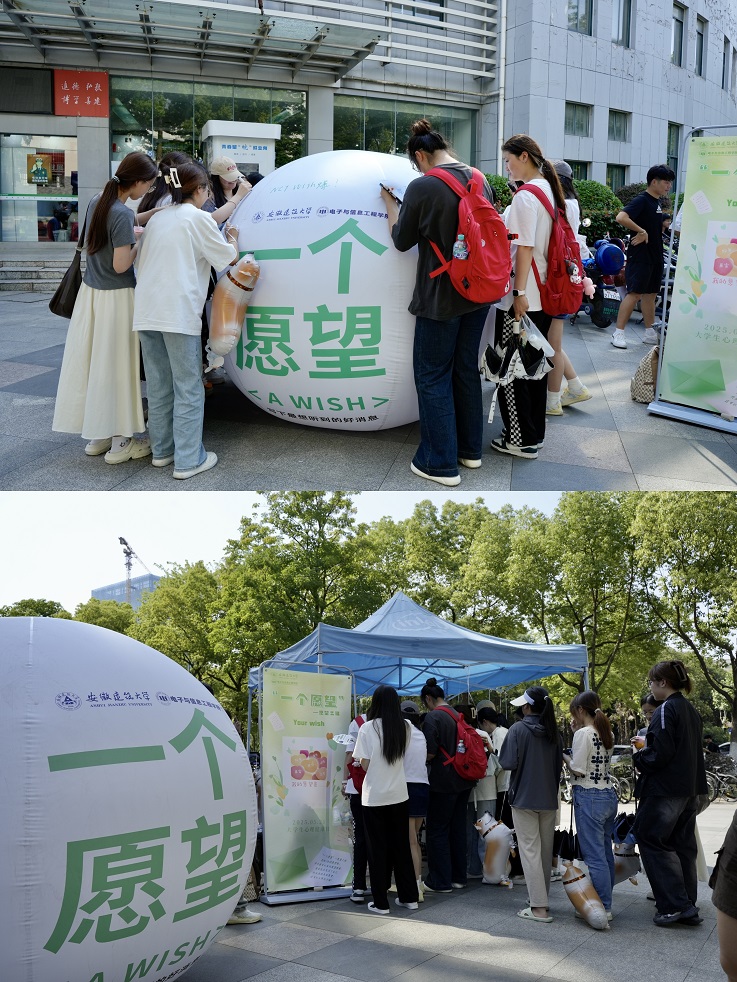 活动现场,一个直径2米的巨型“愿望球”成为焦点。同学们纷纷拿起彩色水笔,在球面上以斑斓色彩写下对未来的期许、对生活的热爱,或是藏在心底的小目标。有的同学写下“希望考研顺利”,有的则俏皮地画上笑脸,表达对生活的乐观态度。完成创作的学子可领取一只“柯基治愈犬”气球,隐喻“以童真守护理想”的心理意象,小狗气球憨态可掬的造型引得大家争相拍照留念。
