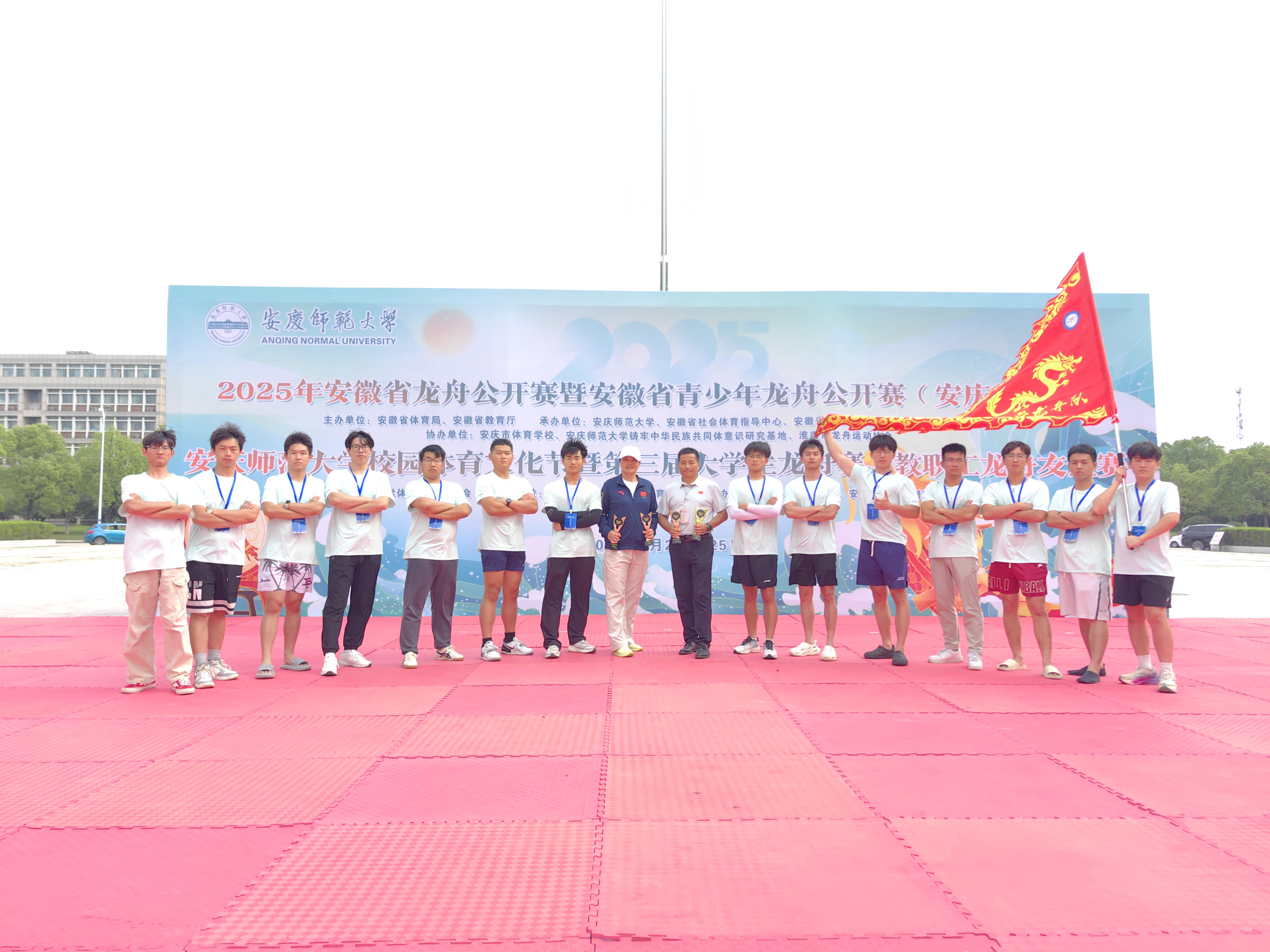 本网讯 5月24日,由安徽省体育局、安徽省教育厅主办的2025年安徽省龙舟公开赛暨安徽省青少年龙舟公开赛(安庆师大站)在安庆师范大学龙山校区双龙湖畔鸣锣开桨。本次龙舟赛由来自中国科技大学、合肥工业大学、安徽师范大学、安庆师范大学和淮南师范学院等高校组建的12支队伍参赛。比赛共设100米直道赛、200米直道赛和2000米绕标赛三个项目,分公开组和混合组两个组别进行。