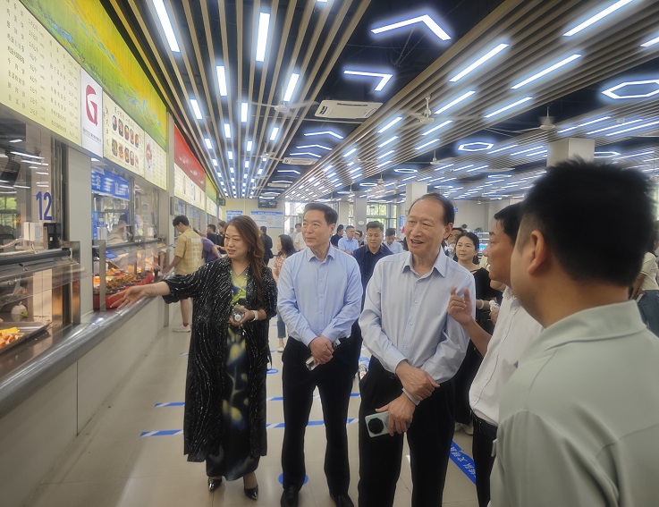 调研组先后参观了学校徽派建筑馆、校史馆,在校领导的陪同下深入学生餐厅,了解学生食堂文化餐厅建设,对“你呼我应”“你点我炒”“明厨亮灶”等后勤智慧化建设表示充分肯定。在易海湖边观看龙舟教学活动,对我校将徽州民俗体育文化融入体育教育教学,以及学校优美的校园环境、浓厚的育人文化氛围给予了高度赞赏。