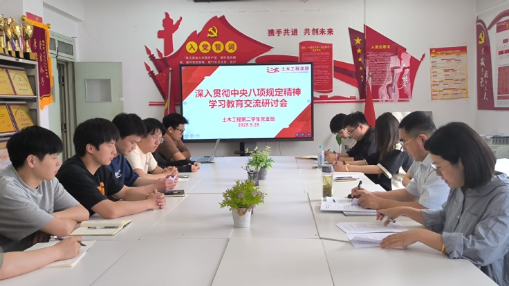 为深入贯彻落实全面从严治党要求,推动中央八项规定精神在基层党支部落地生根,充分发挥校领导对联系学生党支部的指引作用。校党委常委、副校长蔡国军深入土木工程第二学生党支部,指导开展深入贯彻中央八项规定精神学习教育。