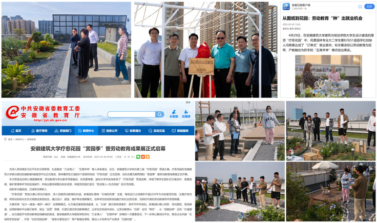 景观系教师党支部深耕“三全育人”实践沃土,连续两年举办大学生造园大赛,构建“校企协同、产教融合”的特色育人平台。大赛联合国内造园行业龙头企业,吸引省内外10余所高校参与,累计培育200余名学生完成近20个兼具艺术审美与实用功能的花园营造作品。赛事创新融入园艺疗法、五感体验等疗愈理念,设置材料加工、植物认知等劳动教育环节,打造出“专业实践—心理健康—劳动教育”三维并进的育人模式,相关教学过程和成果被安徽教育网、安徽日报、安青网、景观设计学前沿等主流媒体、行业平台专题报道。