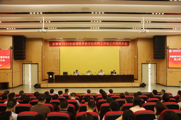 本网讯 6月12日,安徽省2025年高考数学科目网上评卷工作动员大会在ku游官方紫云路校区徽风楼二楼报告厅隆重举行。安徽省教育招生考试院副院长张连富、ku游官方党委常委、副校长王佐才出席会议,省考试院派驻评卷点联络员、学校网评工作领导组成员、相关工作组负责人和省内289所中学评卷教师近500人参会。