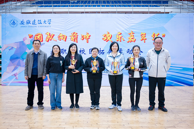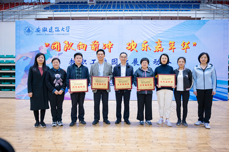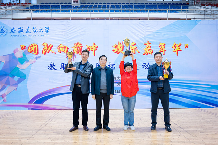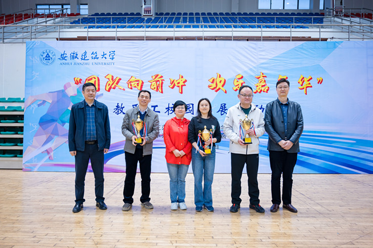 本网讯 在春暖花开、万物始新的季节,我校首届“团队向前冲 欢乐嘉年华”教职工校园拓展运动会在南校区体育馆隆重开幕。3月31日,来自全校15个分工会的近300名教职工参加了比赛。校长孙道胜为获得一等奖的单位颁奖,并与各参赛单位合影留念。