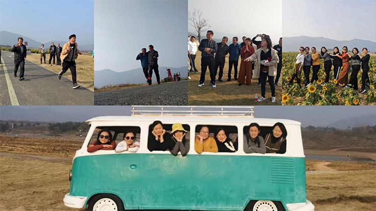教职工们先行游览了冬瓜村和南瓜村,深秋气温虽降,村子却洋溢着一股暖意。置身冬瓜民俗文化村,欣赏油坊、布坊、酒坊,体验美丽新乡村的生活场景与生活情趣。南瓜农村电商村,主打茶、泉、农特、文化,电商聚集地,弥漫着现代化气息,又有农家独特之乐。随后,教职工共赴郁金香高地,山间云雾环绕,大风车屹立于白云深处。大家在欢身笑语中亲近大自然,健步游走、趣味拓展,在山间、在花海,放飞心情,驻足留影心情愉悦。