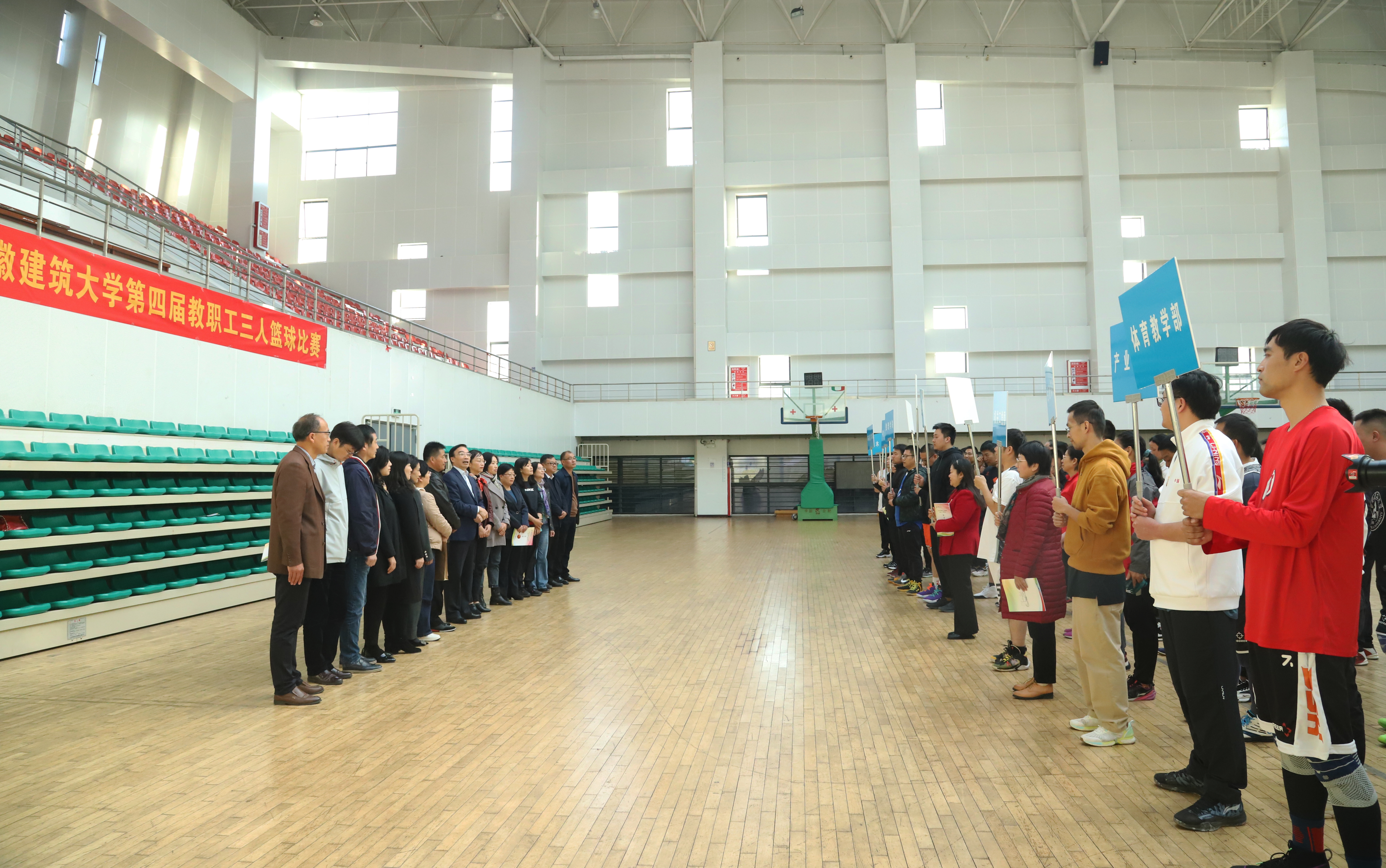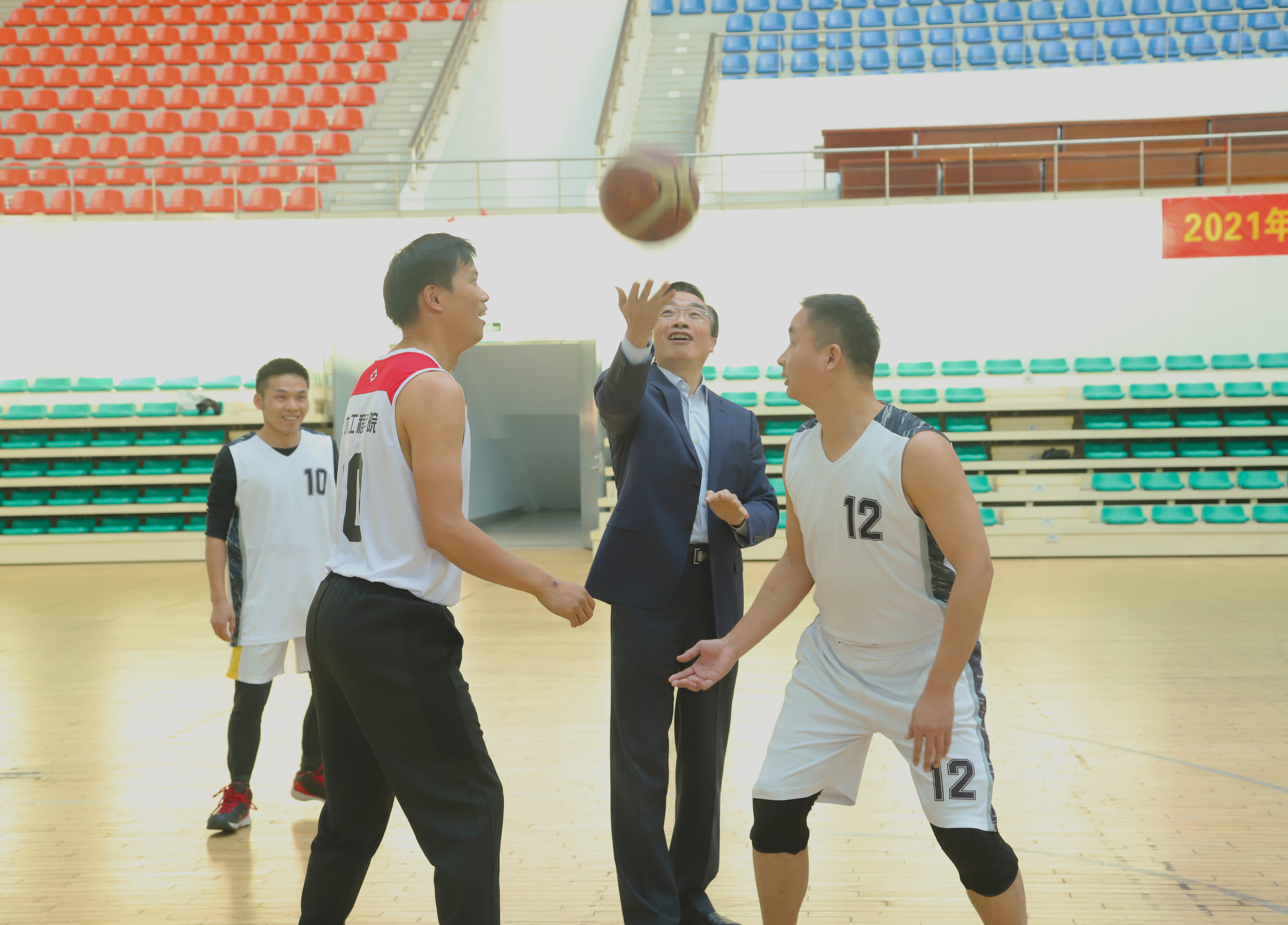 11月10日,校党委书记孙道胜出席开幕式并为比赛开球。孙道胜在致辞中指出,本次篮球比赛,是在学校第二次党代会即将召开、博士授权单位获得突破的形势下举行的。广大教职工在做好教学、科研、管理和服务工作的同时,一定要加强锻炼,提高身体素质。作为三大球之一的篮球,有着广泛的群众基础,三人篮球赛也已进入奥运会项目,希望通过比赛可以提高教职工篮球技能,营造篮球运动氛围,丰富校园文化生活,为在本职岗位上干事创业提供身体素质保障。