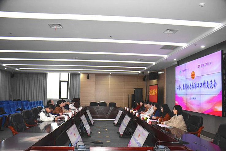 本网讯 3月23日,校工会主席、女工委主任胡雯率校女工委委员及部分分工会主席一行7人赴安徽工程大学工会调研,重点就二级教代会、“职工小家”、“阳光家园”建设以及女职工工作等进行调研交流。安徽工程大学党委副书记、校长卢平和党委副书记苏国红看望了到访人员,安徽工程大学工会主席张寅红热情接待了胡雯一行。