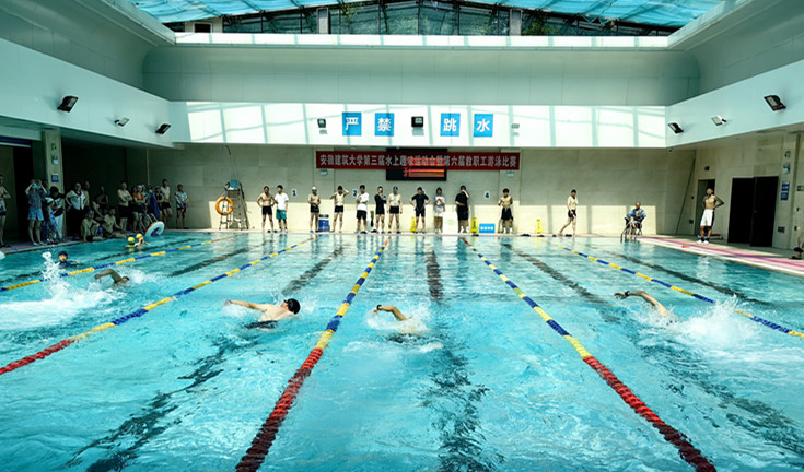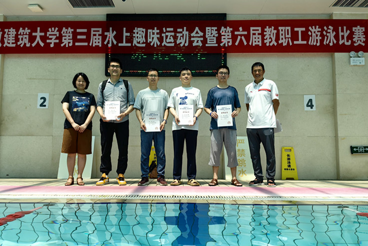 赛前周密准备,赛场劈波斩浪。经过近3个小时激烈比拼,土木学院李婉琳,艺术学院汪哂秋,马克思主义学院夏淑娟、周晨,机关二党委王敏莉及建规学院邓宇宁分获50米女子组前六名,建规学院许开虎,电信学院周原,建规学院蔡进彬、邓元、经管学院黄家墩及电信学院张建中分获50米男子甲组前六名,环能学院方武,艺术学院田强,土木学院的张霖、周其明,后勤集团唐黎及经管学院尹正分获50米男子乙组前六名,数理学院侯雅巍、孙钊、徐金荣,材化学院张劲辉、电信学院徐恒、机电学院方继根分获50米男子丙组前六名,土木学院、建规学院、电信学院、艺术学院、环能学院、马克思主义学院获得团体总分前六名。