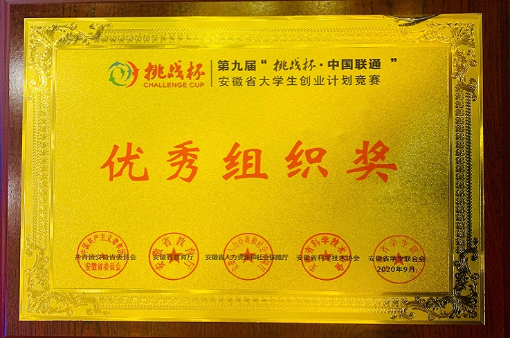 本网讯 近日,第九届“挑战杯”安徽省大学生创业计划竞赛结果揭晓,学校荣获竞赛“优秀组织奖”。