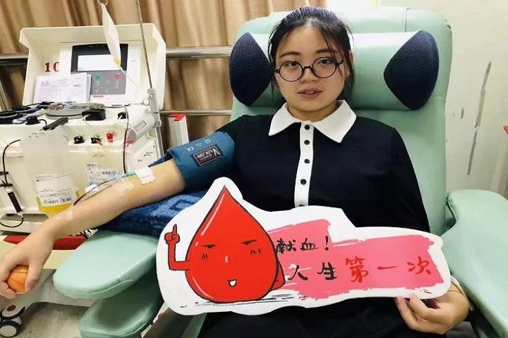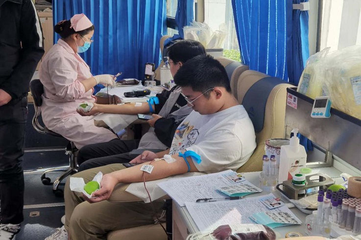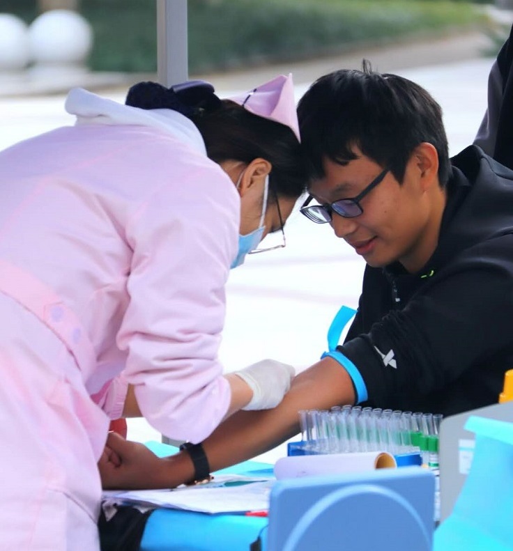 捐献全血是将抽出来的血液全部进行收集。领表、填表、量血压、验血、筛选、抽血,献血者在医护人员的引导下,一个个伸出胳膊献爱心。一位同学说,虽然有点疼,但想到自己的血液能让患者康健,甚至挽救患者的生命,自己感到特别高兴和自豪。这次捐献全血活动南北区共有886名师生参与,献血量约为24.95万毫升。