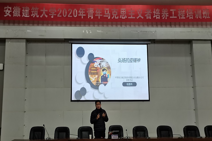 本网讯 12月24日,学校2020年“青年马克思主义者培养工程”培训班开班仪式及首场理论讲座在南区图书馆5楼报告厅举行,近200名培训班学员参加本期学习,共青团安徽省委员会组织部部长姜慎、东方航空公司安徽分公司团委书记杨嘉玮、安徽医科大学团委副书记高晓妹应邀出席,校团委书记唐志敏主持开班仪式。