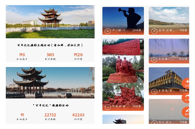 活动自2021年3月启动,由校摄影俱乐部承办,征集以生动的影像展现在中国共产党领导下的新中国发生翻天覆地的变化,反映建大美人、美事、感动瞬间等生活场景的摄影作品,用镜头见证建党百年历史,定格建大魅力,展现建大风采。历时2月,共收到近200余幅学生作品。网络展播期间,同学们积极参与,为喜爱的作品投出宝贵的一票,此次展播共有41970人次观看,累计投票数为22732。