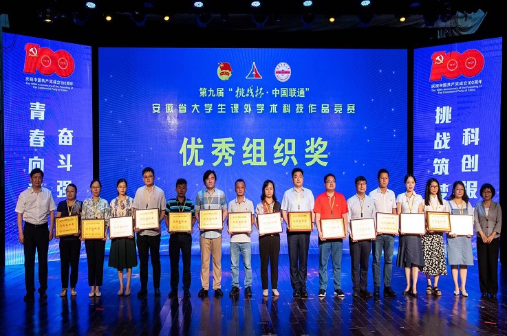 本网讯 近日,第九届“挑战杯”安徽省大学生课外学术科技作品竞赛结果揭晓,学校荣获“优秀组织奖”。我校参赛作品共获省级一等奖1个、二等奖6个、三等奖3个,红色专项活动三等奖2个。